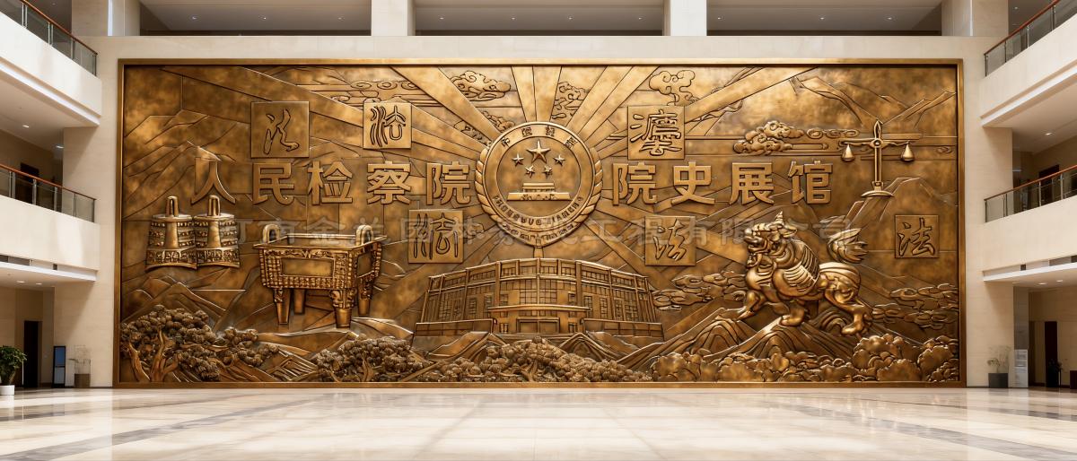 法治图腾建构在华北某省级检察院大堂项目中,以《宪法守护下的检察之路》为主题,中心位置采用6米高锻铜浮雕呈现检察官宣誓场景,徽章细节经200小时手工錾刻,帽徽麦穗精度达1mm;两侧墙面以浅浮雕展现从1931年工农检察部到新时代"四大检察"的历史脉络,形成"纵向历史轴+横向职能轴"的十字叙事结构。