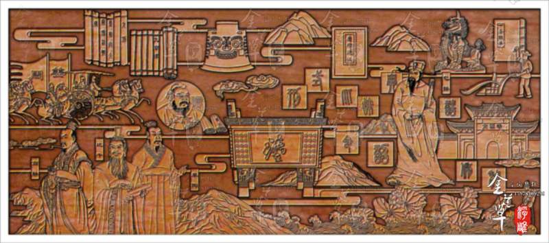 法院铜雕设计以中国古代法文化的发展为思路,对中国古代法文化著作及集大成者进行描述,同时,融入其当地历史文化元素,体现了中国法制文化的源远流长。