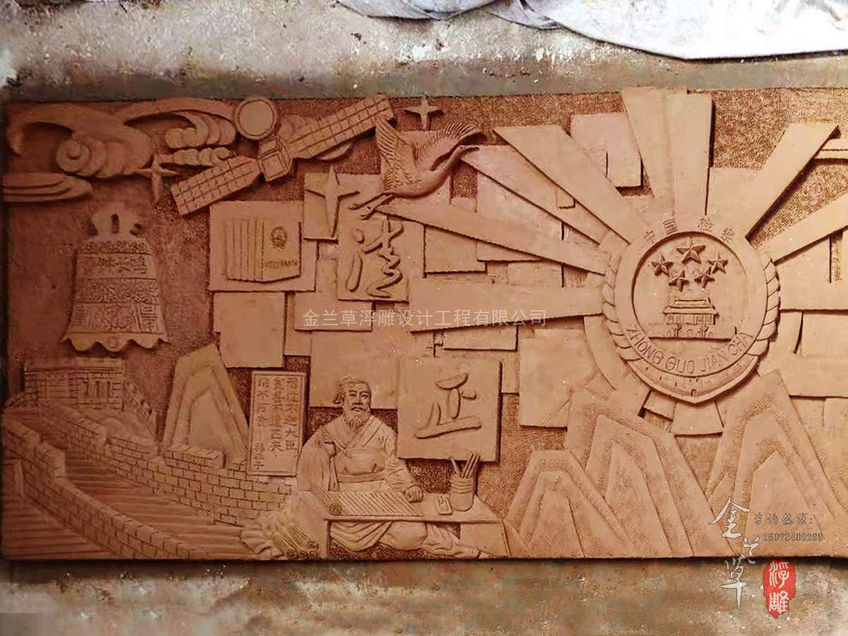 所以,虽然此次检察院玻璃钢浮雕金兰草浮雕在泥塑阶段及玻璃钢磨具翻制阶段都做的分外小心和仔细,但最终后期效果,期待客户反馈。